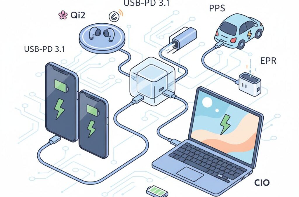 本記事では、最新の充電規格やワイヤレス充電の動向、日本市場特有の安全基準、主要デバイスごとの実際の充電挙動までを整理し、なぜ「速くて安全な充電」が可能になったのかをわかりやすく解説します。
