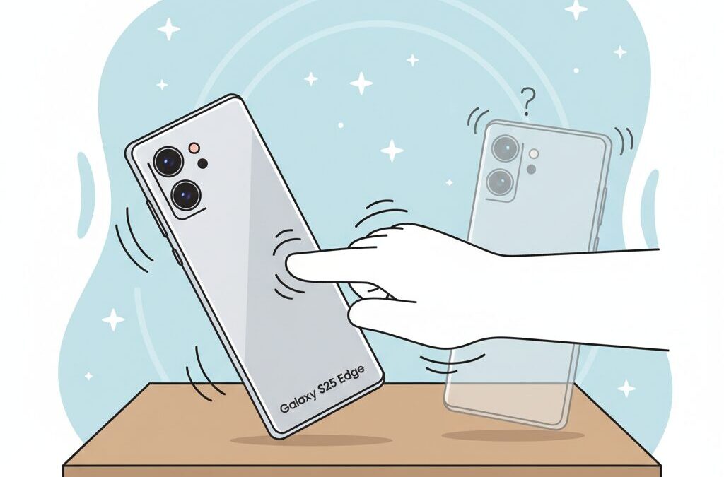Galaxy S25 Edgeのガタつきを現実的に軽減する方法として、もっとも効果が高いのはアクセサリーによる物理的な補正です。端末そのものの設計を変えられない以上、接地面を増やす、もしくは段差を埋めるという発想が基本になります。実際、海外レビューやReddit上のユーザー報告でも、アクセサリー装着後に「机置き操作が実用レベルになった」という声が多数確認されています。