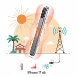 Apple関連の分解分析で知られるTechInsightsや、PhoneArenaの設計考察によれば、iPhone Airは約165gという軽量さも相まって、慣性による揺れの減衰が起きにくい構造になっています。質量が小さいほど、指先から加わる微小な力がそのまま運動に変換されやすく、揺れが収束しにくいのです。