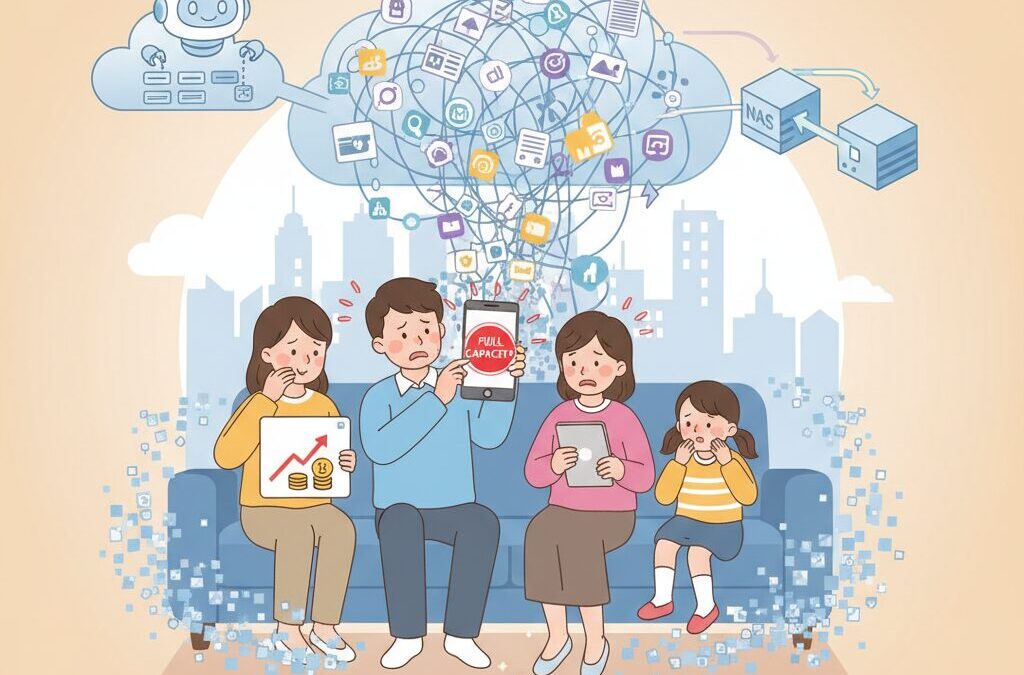 2025年現在、クラウド容量不足という問題は、単なるストレージの残量警告ではなく、私たちのデジタル生活そのものの設計思想が限界を迎えていることを示しています。スマートフォンの高性能化により、写真や動画は4Kや8Kが当たり前になり、日常の記録はライフログとして自動的に蓄積され続けています。かつては「保存しておけば安心」だった行為が、今や管理不能な負債へと変わりつつあります。