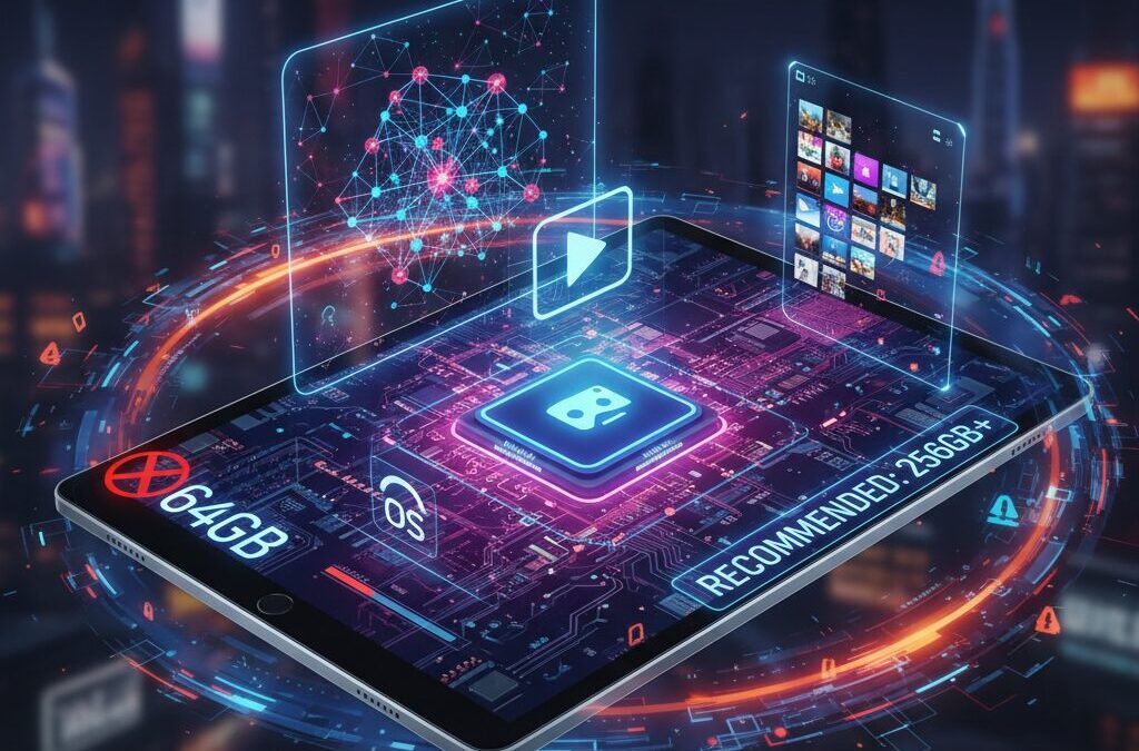 2026年現在、タブレットは動画視聴やWeb閲覧だけの端末ではありません。生成AIのオンデバイス実行、PCに近い作業環境、そして超高精細なゲームや映像体験まで担う存在へと進化しています。その一方で、長年エントリーモデルの基準だった64GBストレージは、OSやAI、巨大化するコンテンツによって急速に余裕を失いつつあります。