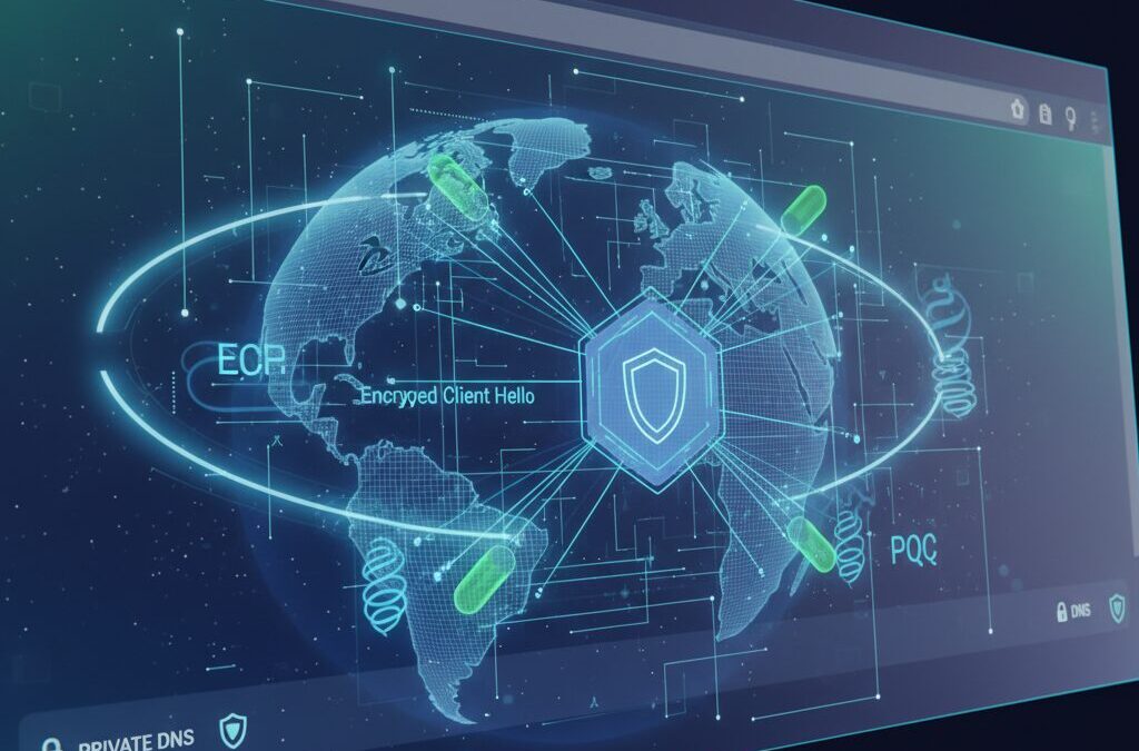 特に注目されているのが、プライベートDNS設定やEncrypted Client Hello(ECH)、そしてポスト量子暗号(PQC)といった、これまで一般ユーザーには見えにくかった技術です。これらは、閲覧履歴の漏えいやDNSの盗聴、さらには将来の量子コンピュータによる解読リスクにまで対応するための仕組みとして、急速に実装が進んでいます。