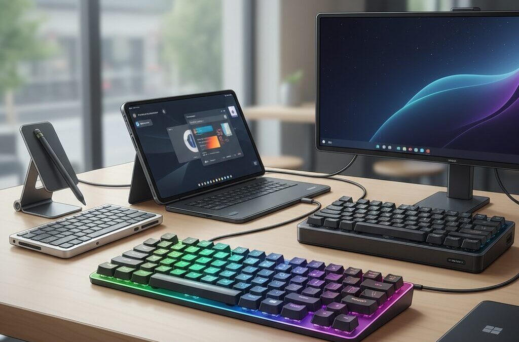 さらに日本市場では、打鍵感を追求した国産ハイエンドモデルや、透明デザインとRGBライティングを楽しむ“推し活”向けキーボード、持ち運びに特化した折りたたみ式など、多様な選択肢が共存しています。本記事では、最新技術や具体的な製品事例、研究知見も交えながら、2026年に最適なモバイル外付けキーボード選びの全体像をわかりやすく解説します。